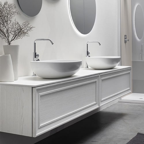 La nuova collezione Arcom Opera è tutto ciò che un amante del design classico può volere dal proprio bagno. Il disegno delle cornici delle ante è leggero ma caratterizza tutto il mobile, mentre l’utilizzo di otto tonalità diverse di frassino decapè da versatilità a tutta la collezione.