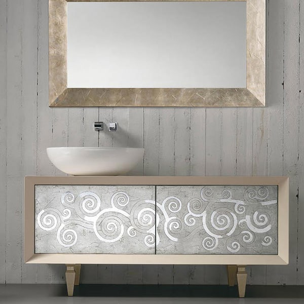 La vera particolarità della collezione Tosca però è la possibilità di poter decorare le ante del mobile a piacimento. Infatti Eban da non solo la possibilità di scegliere una seconda finitura tra le molte opzioni a disposizione, ma anche di poter personalmente disegnare il proprio motivo per poi essere apposto sulle ante.