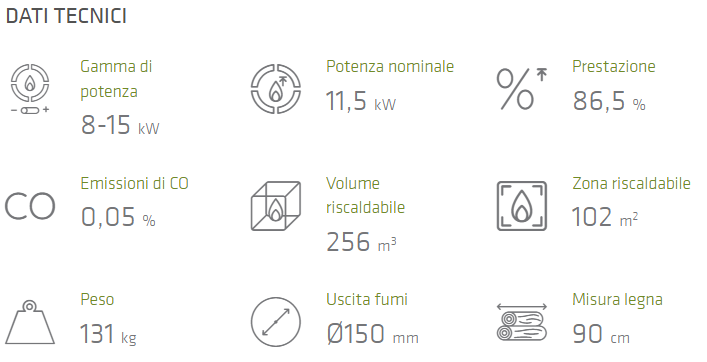 • Materiale focolare: Ghisa