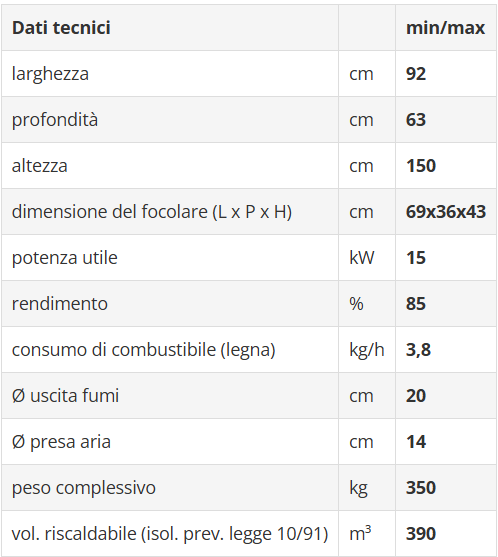 • Uscita fumi superiore Ø 20 cm