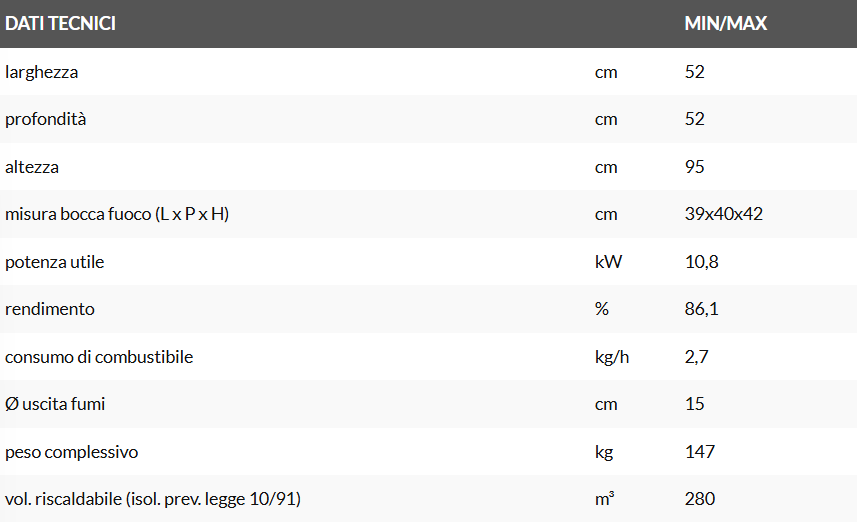 • Ciocchi di legna fino a 40 cm di lunghezza (posizionati in verticale)